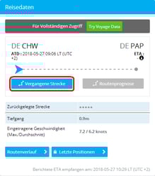 Um die von WILLI hinterlassenen "AIS-Spuren" auf der Karte anzuzeigen, müssen Sie bei den Reisedaten das Feld [Vergangene Strecke] anklicken.