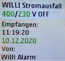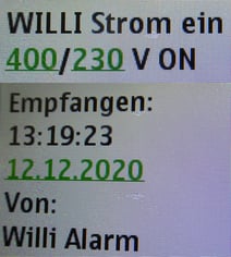 begann mit diesen SMS- und E-Mail-Meldungen der Telealarmanlage an Bord von WILLI: