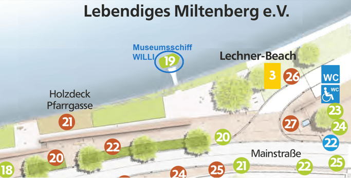 Von Freitagabend, 1. Juli bis Sonntagabend, 3. Juli 2022 war WILLI Gast beim 4. Mainfest Miltenberg.Der Liegeplatz von WILLI war der unterste Steiger der Personenschifffahrt beim Main-km 124,47